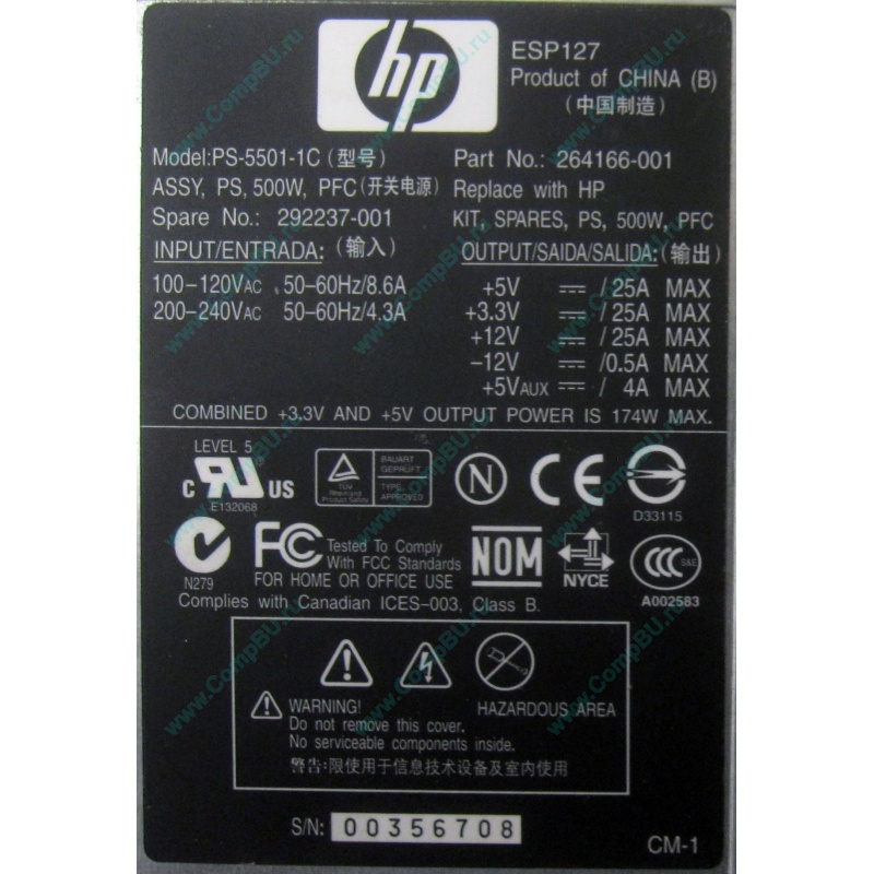 Серверный блок питания 500W HP ESP127 PS-5501-1C (p/n 264166-001) для серверов HP ML350G3.