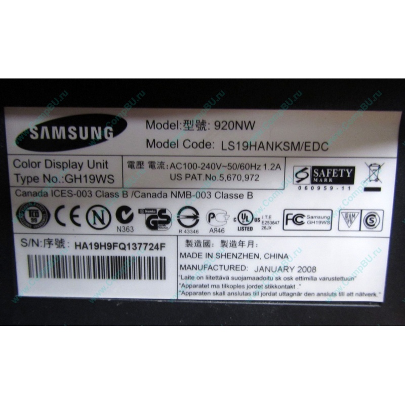 Монитор 19" TFT Samsung SyncMaster 920NW