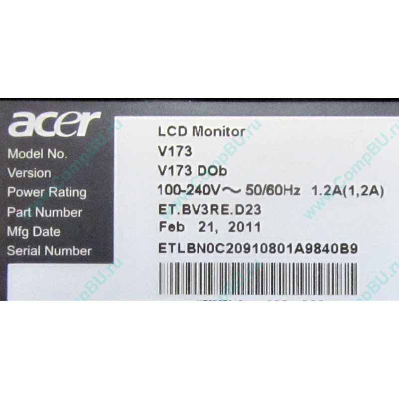 Монитор 17" TFT Acer V173 1280x1024 (5:4), цвет черный. Состояние очень хорошее.