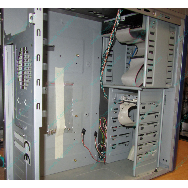 Б/У компьютерный корпус ATX формата Miditower Codegen SuperPower 6102-C9 с пластмассовой ручкой сверху. Цвет серебристый, лицевая панель синяя (бирюзовая). Установлен DWDRW DL IDE и FDD. Без блока питания!